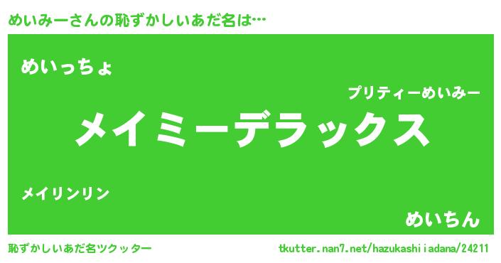 | 意味不明あだ名 | 『自称めいみー』『めいみーフォーエバー』 |