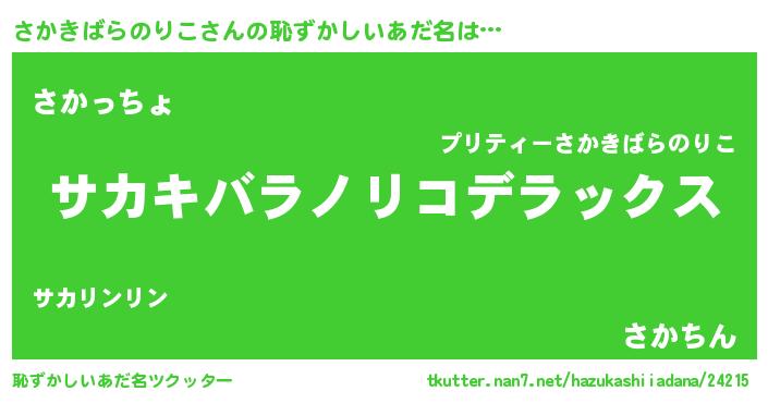 | 女子向けラノベタイトル風あだ名 | 『さかきばらのりこなんてお断りですっ。』 |