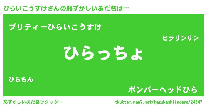 | 欧米人風あだ名 | 『ひらいこうすけクリステル』 |