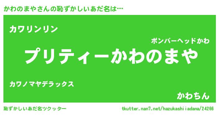 | ヒーロー風カッコイイあだ名 | 『スーパーカワノマヤ』『炎刃騎士カワ』 |