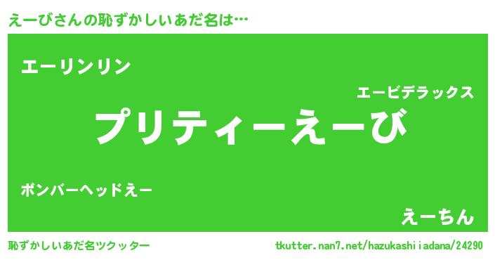 | 男性向けラノベタイトル風あだ名 | 『緋弾のエービ』『えーびの憂鬱』 |