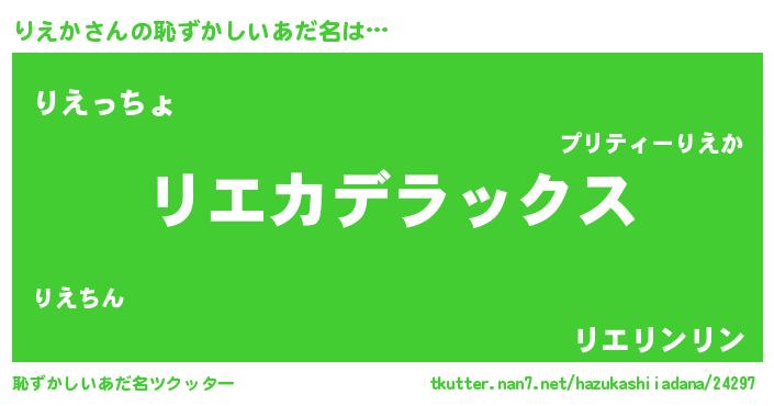 | 男性向けラノベタイトル風あだ名 | 『リエカスレイヤー』『緋弾のリエカ』 |