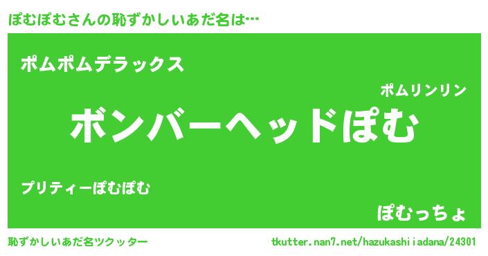 | ヒーロー風カッコイイあだ名 | 『愛の使者ぽむぽむ』『黄金騎士ポム』 |