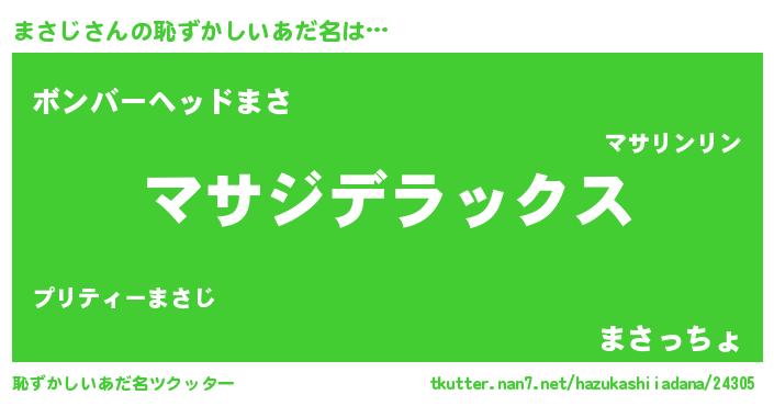 | ヒーロー風カッコイイあだ名 | 『仮面マサダー』『超時空戦士マサジ』 |