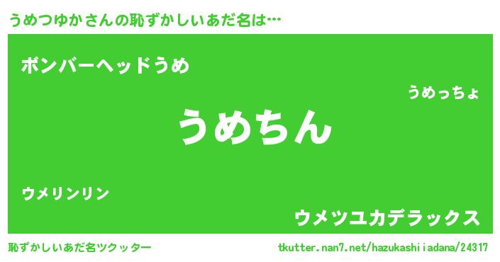 | 意味不明あだ名 | 『永久保存うめつゆか』『自称うめつゆか』 |
