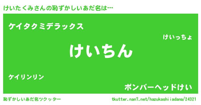 | 意味不明あだ名 | 『永久保存けいたくみ』『自称けいたくみ』 |