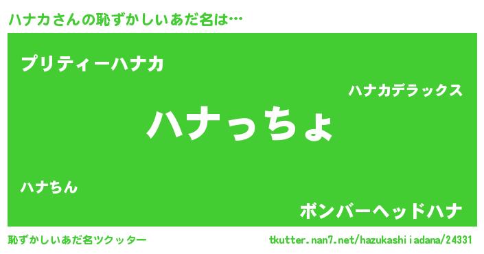 | 意味不明あだ名 | 『ハナカフォーエバー』『ペロリンハナカ』 |
