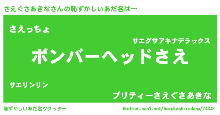 | 意味不明あだ名 | 『住所不定無職さえぐさあきな(47歳)』 |