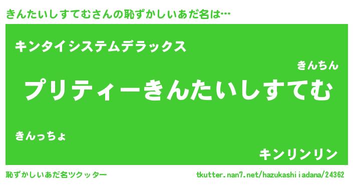| 意味不明あだ名 | 『住所不定無職きんたいしすてむ(85歳)』 |