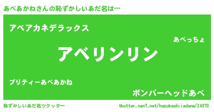 | 意味不明あだ名 | 『とにかく怪しいあべあかね』 |