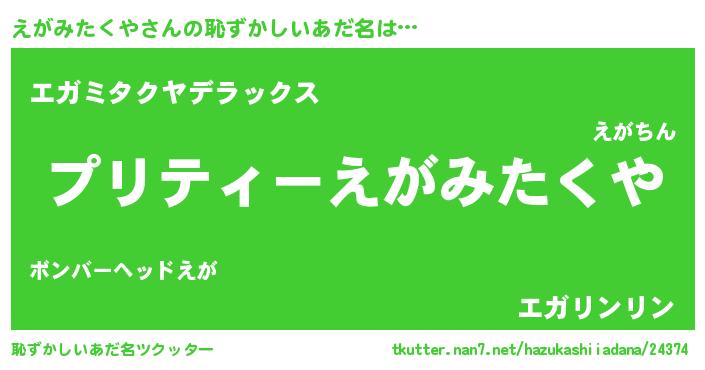 | 肩書あだ名 | 『えがみたくやCEO』『えがみたくや少尉』 |