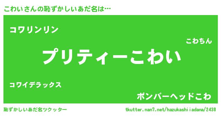 | 男性向けラノベタイトル風あだ名 | 『こわいの憂鬱』『緋弾のコワイ』 |