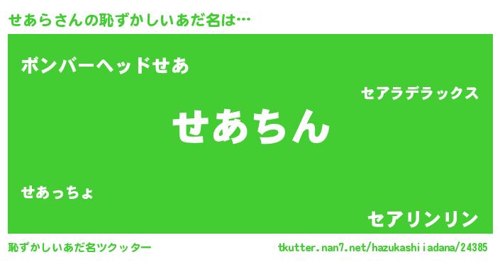 | ヒーロー風カッコイイあだ名 | 『ネオセアラ』『天空の使者せあら』 |
