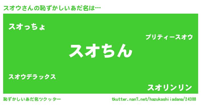 | 男性向けラノベタイトル風あだ名 | 『この素晴らしい世界にスオウを!』 |