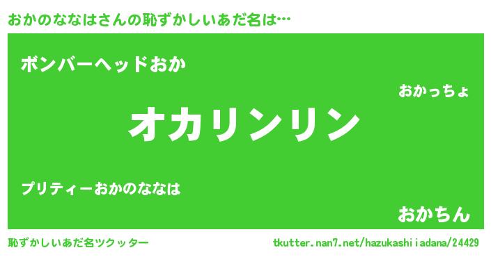 | 男性向けラノベタイトル風あだ名 | 『この素晴らしい世界におかのななはを!』 |