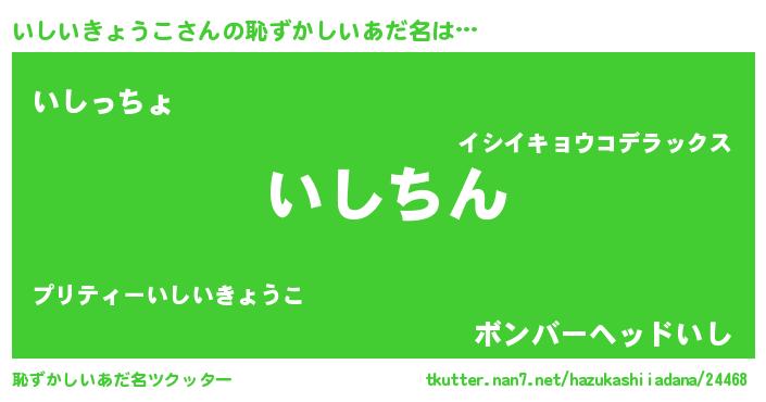 | 胡散臭い通販商品みたいなあだ名 | 『絶対に幸福をもたらす健康食品…その名も「いしいきょうこ」』 |