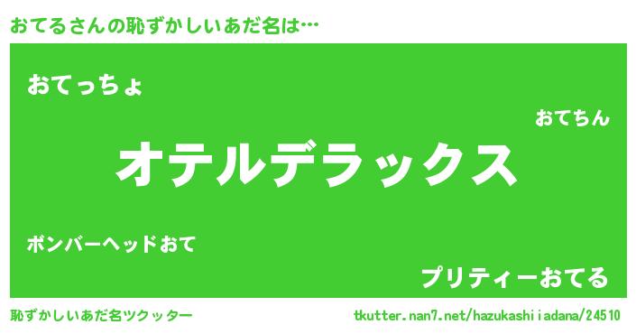 | 男性向けラノベタイトル風あだ名 | 『Re:おてるから始める異世界生活』 |