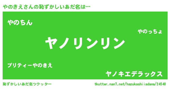 | ポケモン風あだ名 | 『ヒヤノキエ』『ヤーノイ』 |
