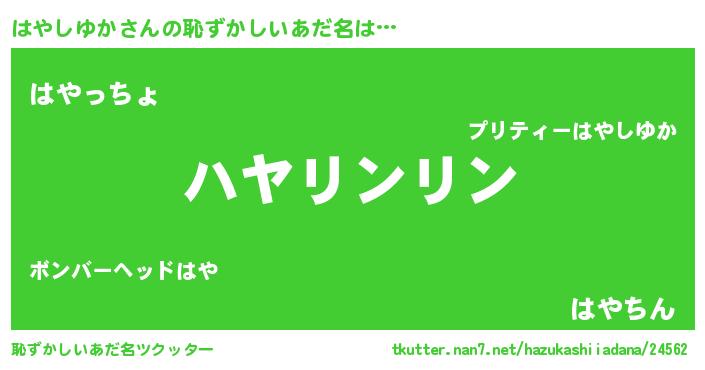 | ポケモン風あだ名 | 『ヒハヤシユカ』『ハヤシダネ』 |