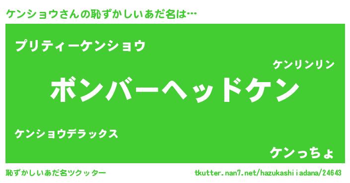 | ヒーロー風カッコイイあだ名 | 『正義の使者ケンショウ』『仮面ケンダー』 |