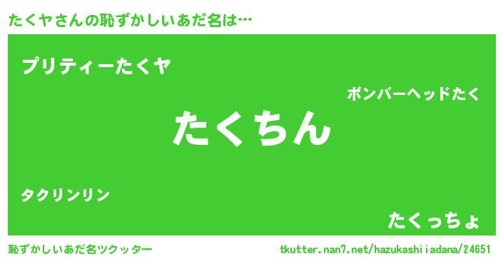 | ヘコむあだ名 | 『たくヤ(笑)』『たくふぇ~』 |