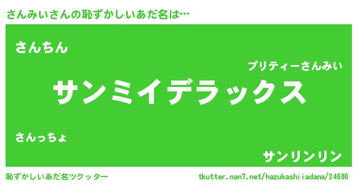 | ヒーロー風カッコイイあだ名 | 『最強戦士サンミイ』『仮面サンダー』 |