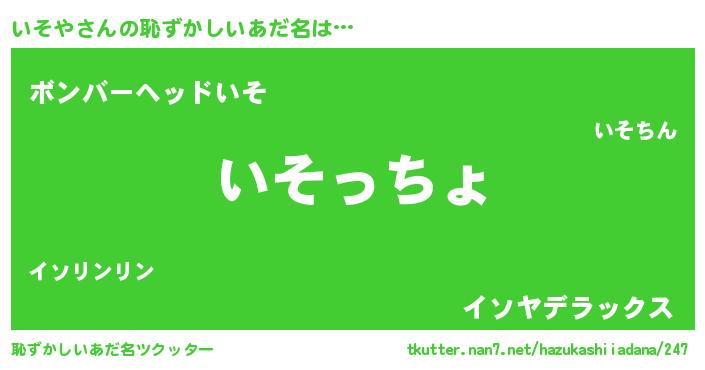 | 意味不明あだ名 | 『ヨモギ科いそや属』『自称いそや』 |