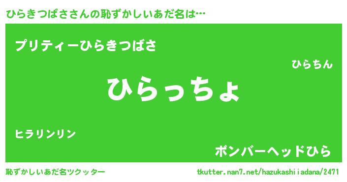 | ヘコむあだ名 | 『なまこ酢』『ひらっふぃ~』 |