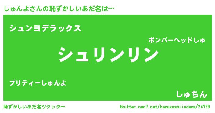 | 男性向けラノベタイトル風あだ名 | 『ダンジョンにしゅんよを求めるのは間違っているだろうか』 |