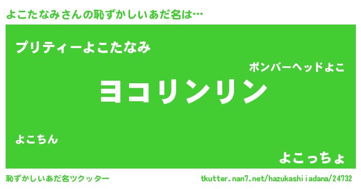 | ヘコむあだ名 | 『よこを』『よこにゅー』『酢こんぶ』 |