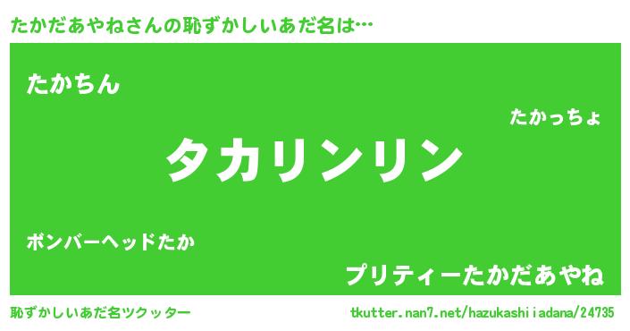 | 意味不明あだ名 | 『とにかく怪しいたかだあやね』 |