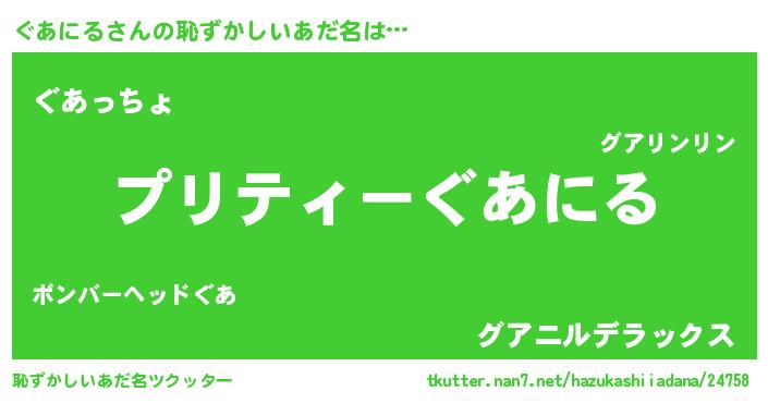 | ヒーロー風カッコイイあだ名 | 『スーパーグアニル』『仮面グアダー』 |