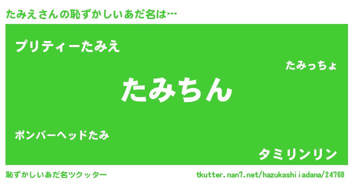 | ヘコむあだ名 | 『たみえ(小並感)』『たみっふぃ~』 |