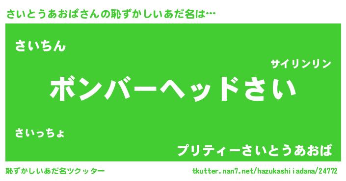 | ヘコむあだ名 | 『さいとうあおば(苦笑)』『さいふぇ~』 |