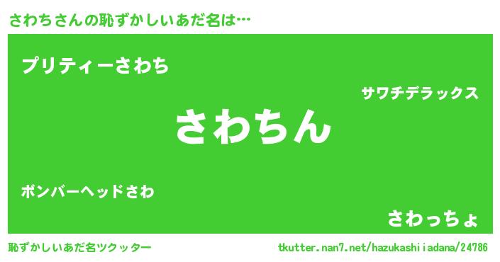 | 意味不明あだ名 | 『ニラ科さわち属』『永久保存さわち』 |