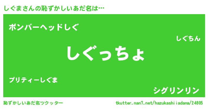 | ヘコむあだ名 | 『つくし』『しぐ太郎』『しぐにゅー』 |