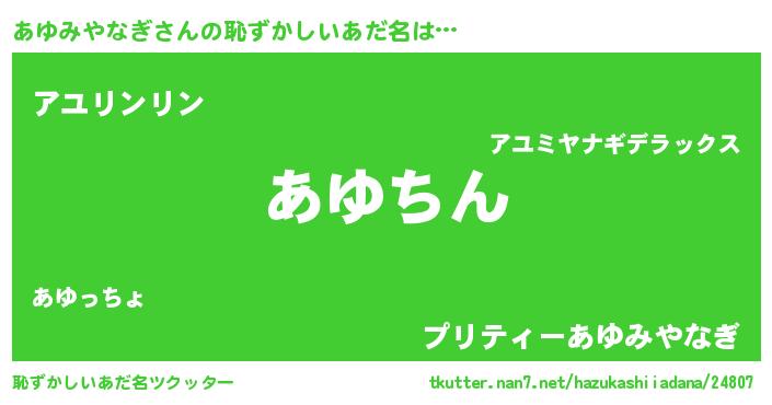 | ヘコむあだ名 | 『あゆみやなぎ(笑)』『あゆ太郎』 |