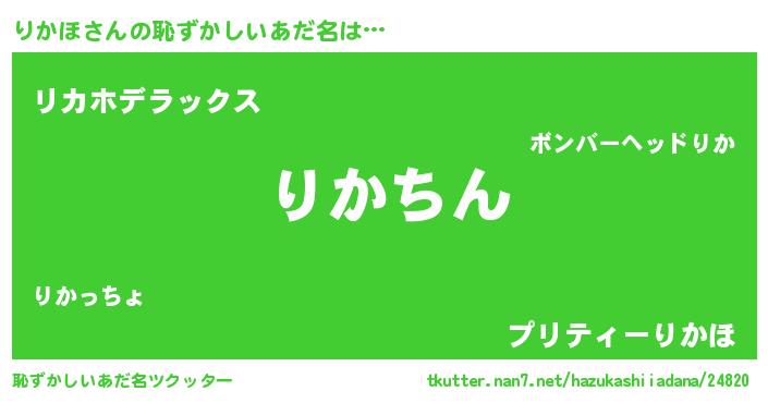 | ヘコむあだ名 | 『りかほ(小並感)』『りかにー』 |