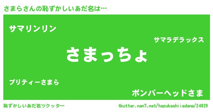 | 女子向けラノベタイトル風あだ名 | 『さまらの雑貨屋さん』『さまら恋絵巻』 |