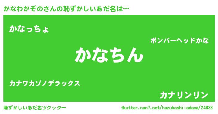 | ヒーロー風カッコイイあだ名 | 『ネオカナワカゾノ』『仮面カナダー』 |