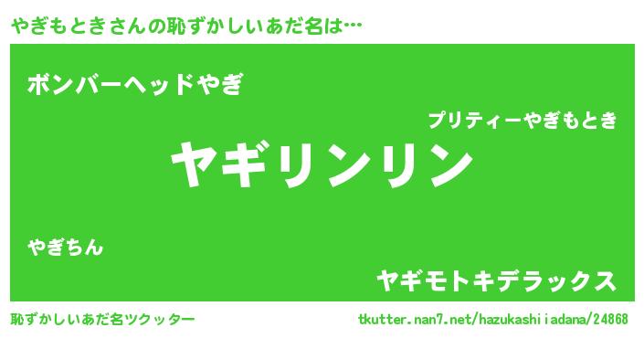 | ポケモン風あだ名 | 『ヒヤギモトキ』『ヤギキング』 |