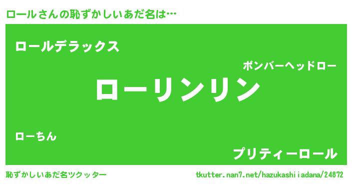 | 男性向けラノベタイトル風あだ名 | 『ロールの嫁は女の子じゃないと思った?』 |