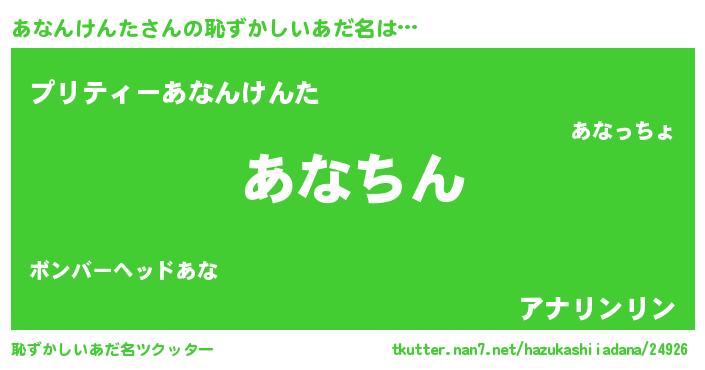 | ヘコむあだ名 | 『あなんけんた(震え声)』『あなもー』 |