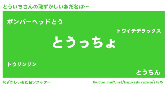 | ヘコむあだ名 | 『酢こんぶ』『とういち(笑)』 |