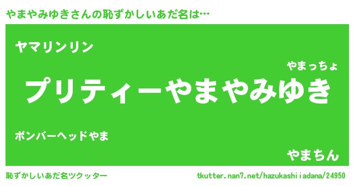| ヒーロー風カッコイイあだ名 | 『スーパーヤマヤミユキ』『黄金騎士ヤマ』 |