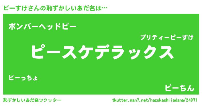 | 女子向けラノベタイトル風あだ名 | 『闇のピーすけ』『ピーすけ恋絵巻』 |