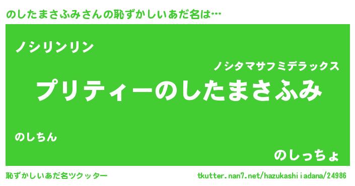 | 男性向けラノベタイトル風あだ名 | 『転生したらのしたまさふみだった件』 |