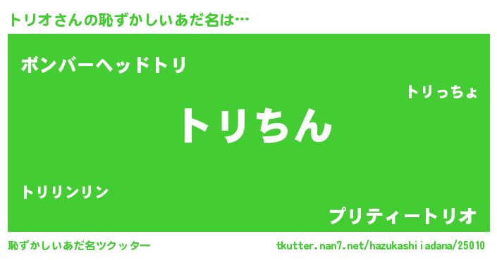 | ヘコむあだ名 | 『トリオ(小並感)』『トリにー』 |