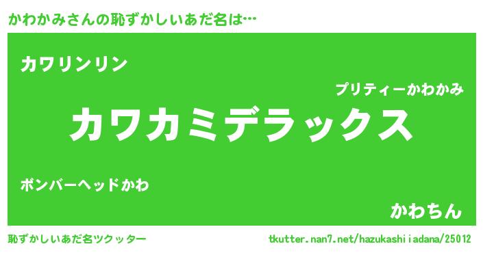 | 意味不明あだ名 | 『自称かわかみ』『永久保存かわかみ』 |