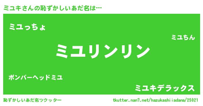 | ヘコむあだ名 | 『ミユっ子』『豆乳』『ミユっふぃ~』 |